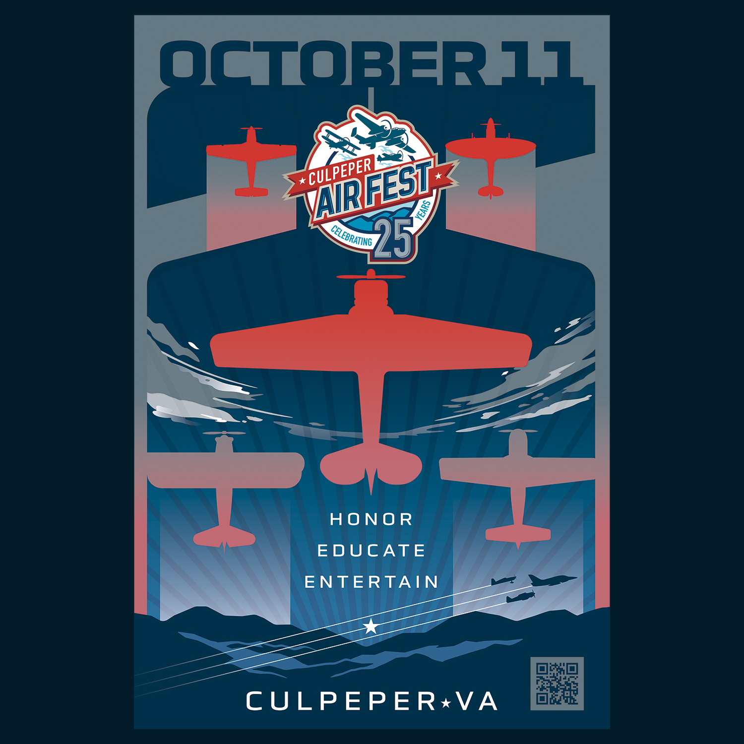 Being on the Air Fest Committee since 2017, I have learned a lot and tried to evolve the poster design each year. From program logos, website, invitations, sponsorship items, posters, apparel, signage, social media, and special wine labels, each year brings new challenges. Click to enlarge.